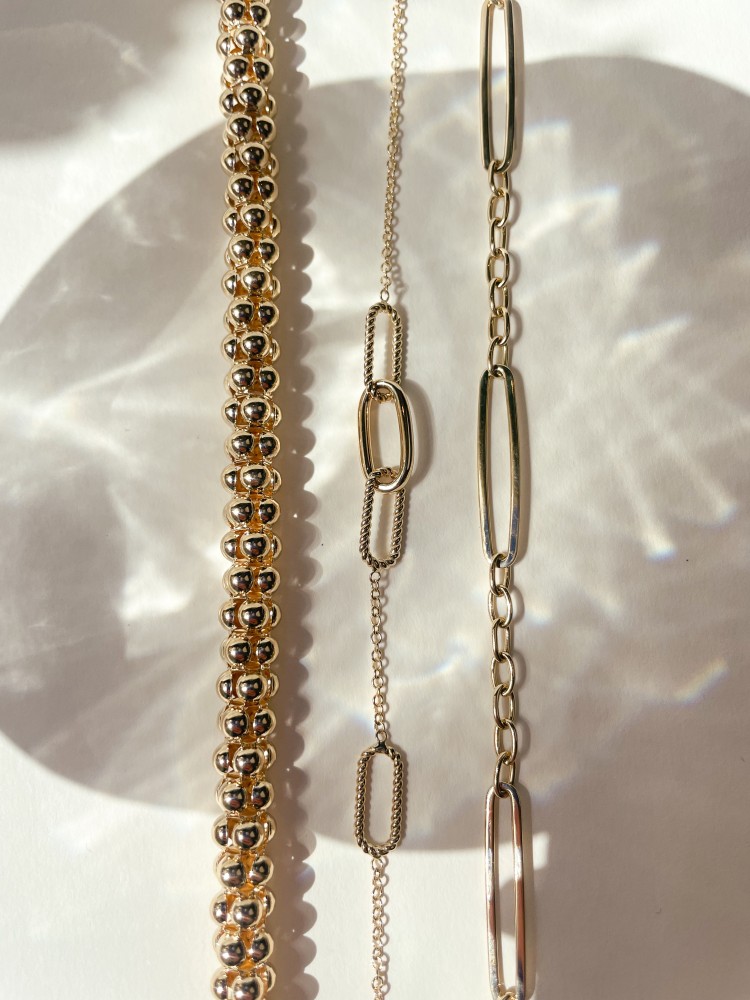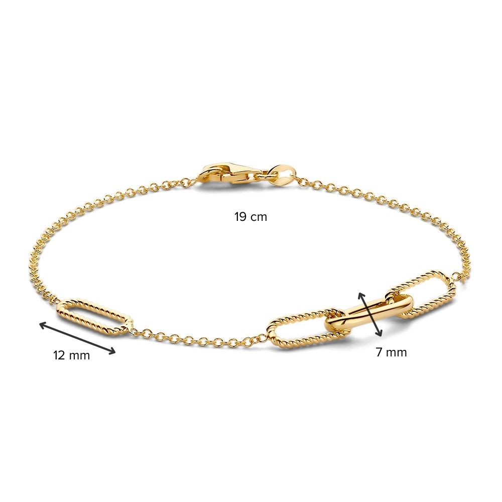 Geelgouden armband met paperclipschakels met een getorste bewerking.
