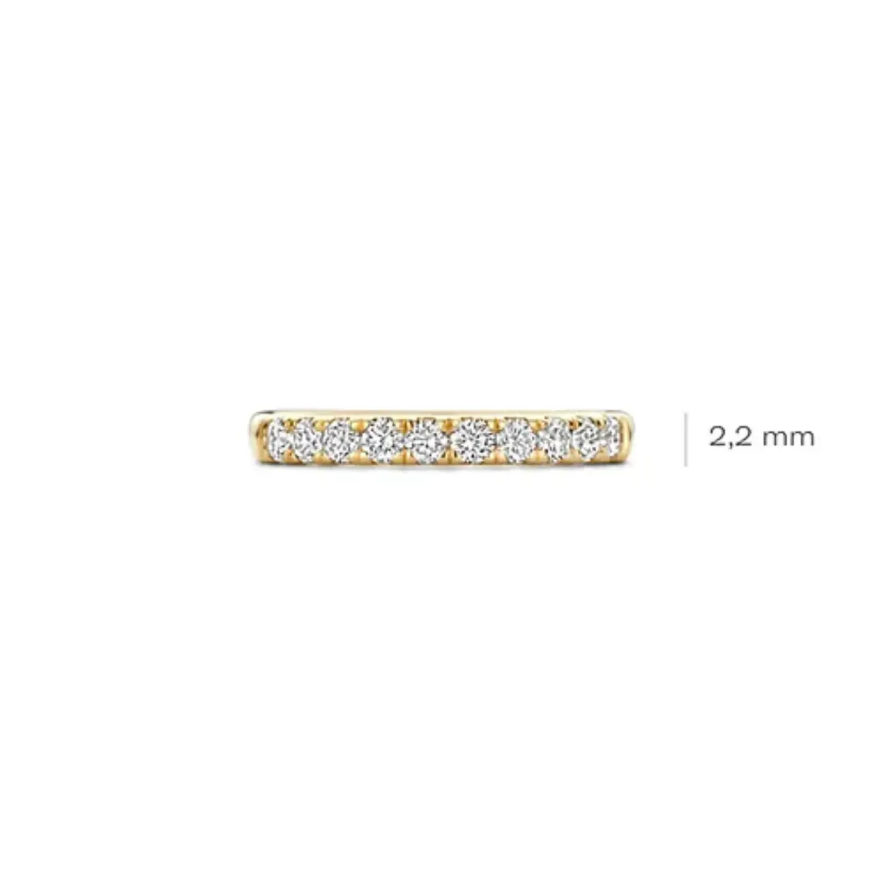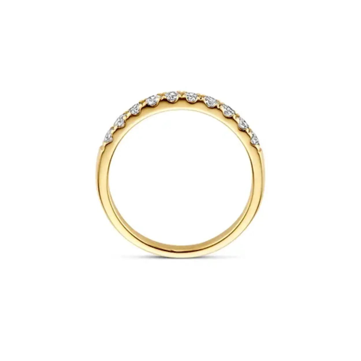 De Blush Ring | LG1014Y/54 is een verfijnde gouden ring met een breedte en diepte van 2,2 mm. Het beschikt over 10 briljantgeslepen laboratoriumdiamanten met een totaal karaatgewicht van 0,48. De stenen hebben de kleur H en zuiverheid SI1. Draag deze ring als een elegant statement of als aanvulling op andere gouden sieraden.