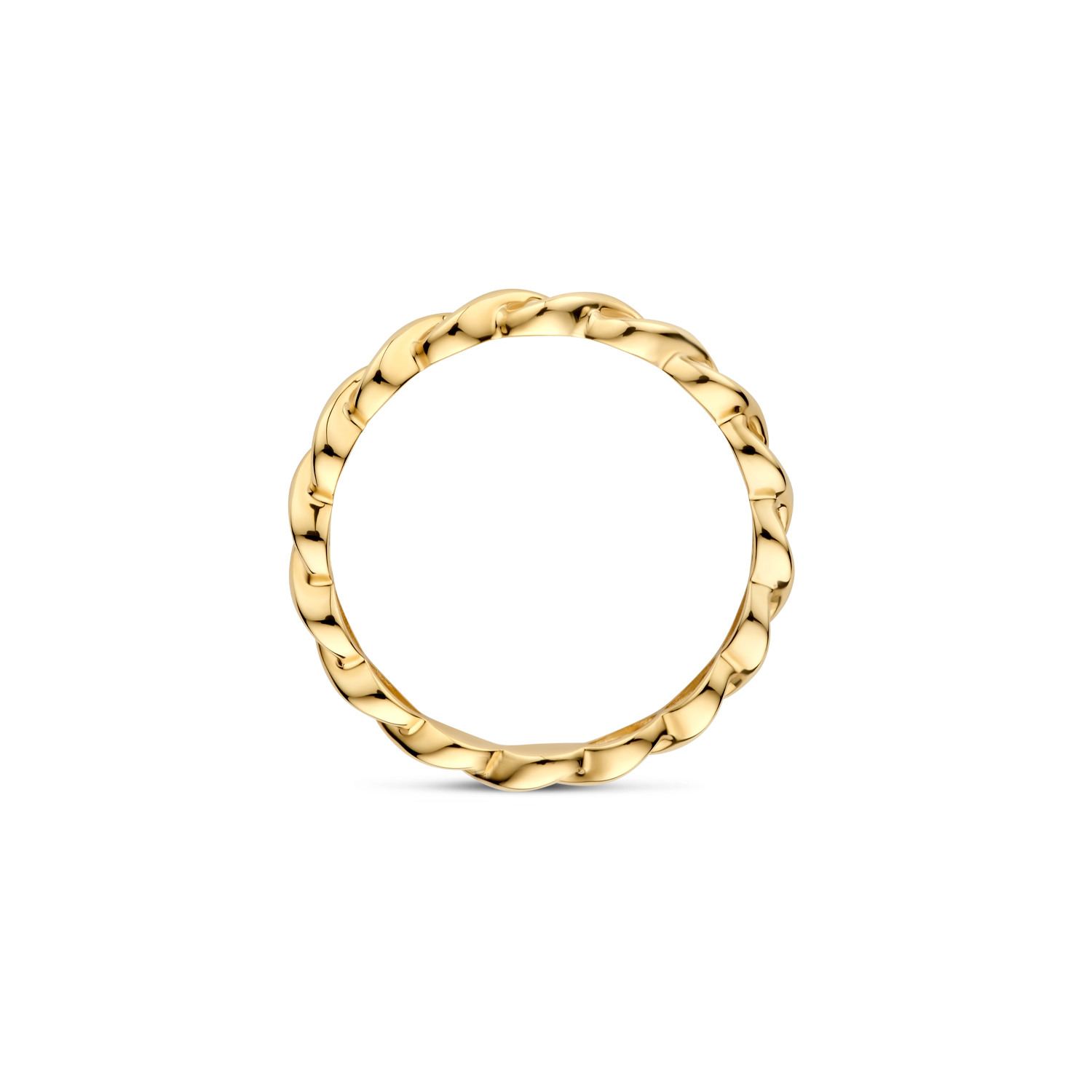 Schitterend zirkonia in een gevlochten railzetting maken deze 14k geelgouden ring tot een stijlvolle eyecatcher. De band heeft een doorsnede van 2,6 mm en de ring is prachtig te combineren met andere (aanschuif)ringen uit onze collectie.