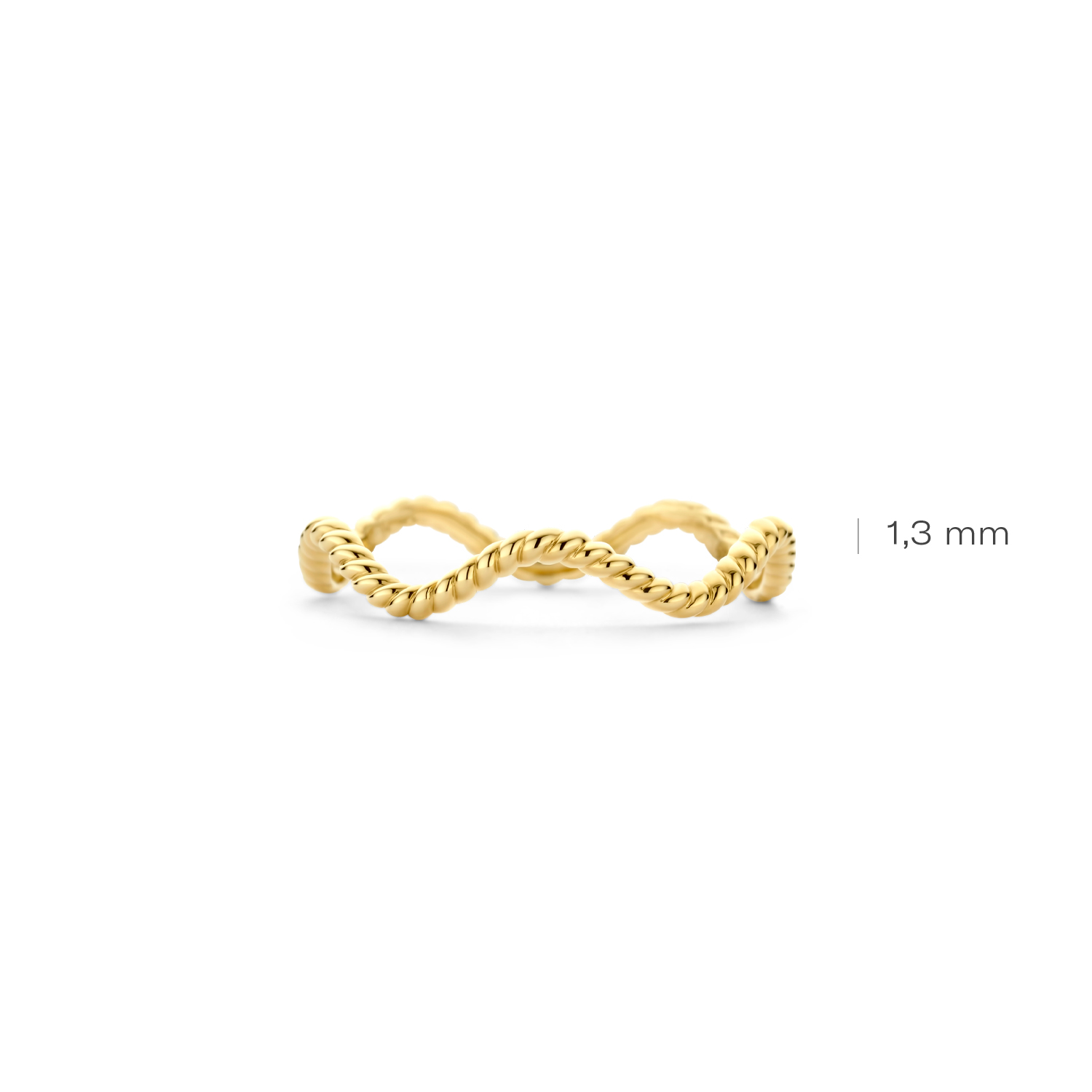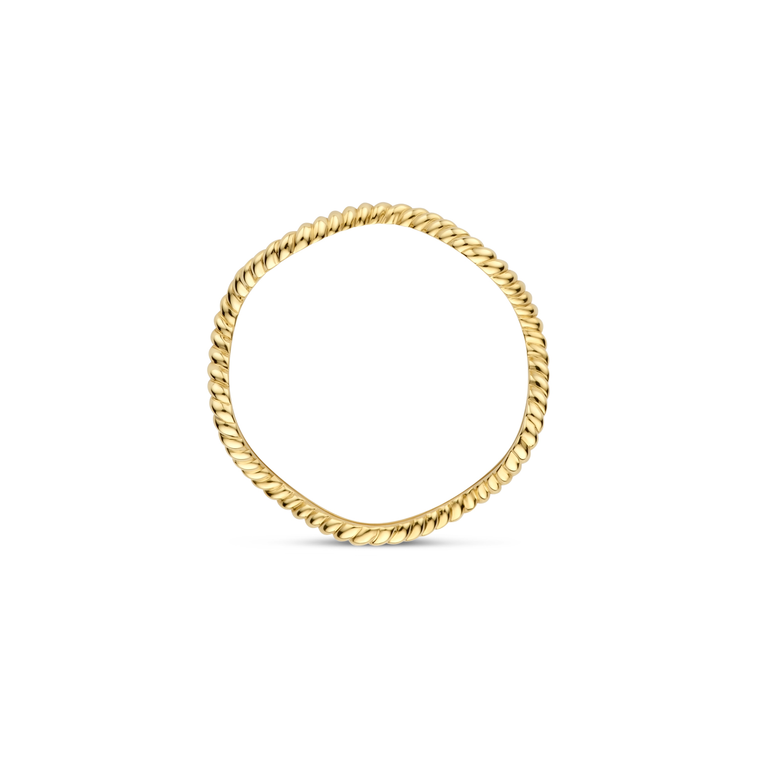 Deze stijlvolle ring van 14k geelgoud valt op door het geraffineerde golvende kabelmotief. De band heeft een doorsnede van 1,3 mm. De ring is prachtig op zichzelf maar ook heel mooi te matchen met andere (aanschuif)ringen uit onze collectie.