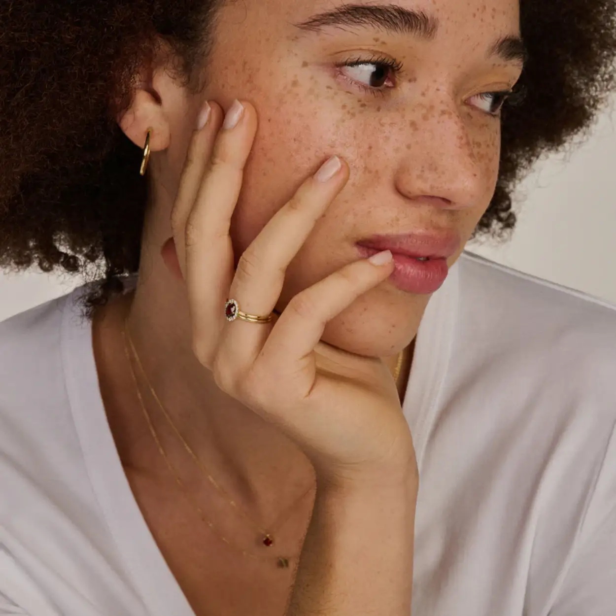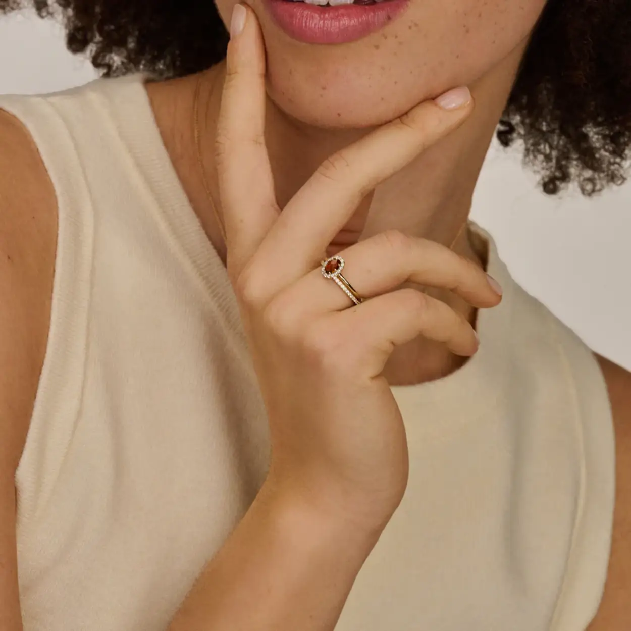 Deze elegante ring uit de categorie "sieraden" heeft een siermaat van 54. De Blush Ring, een verfijnde en stijlvolle aanvulling voor elke gelegenheid, draag je het beste aan de ringvinger of middenvinger voor een trendy look die zowel casual als formeel gedragen kan worden.