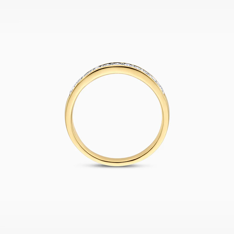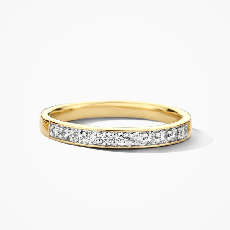 Deze Blush ring is een elegante ring van 14 karaat geelgoud met 0,28 karaat lab diamant in pavé-zetting. Diameter: ⌀ 2.5 mm.