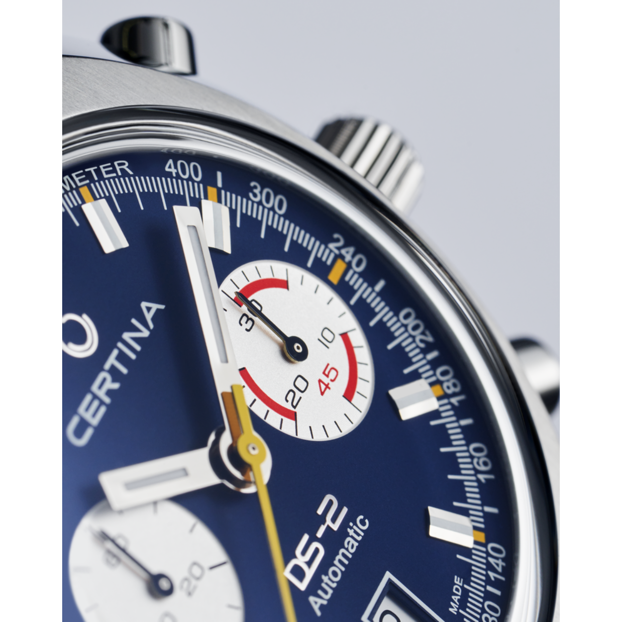 De nieuwe chronograaf van Certina is geïnspireerd op een uurwerk dat letterlijk op het hoogtepunt van zijn tijd was! De voorganger van de DS-2 Chronograph Automatic bewees zijn uitmuntende kwaliteiten tijdens een spectaculaire expeditie naar de Mount Everest. Het nieuwe model brengt deze avontuurlijke geest naar de 21e eeuw, met een sportief-elegant vintage design en siliconentechnologie. Zo wordt traditionele savoir-faire stijlvol overgedragen aan de volgende generatie.