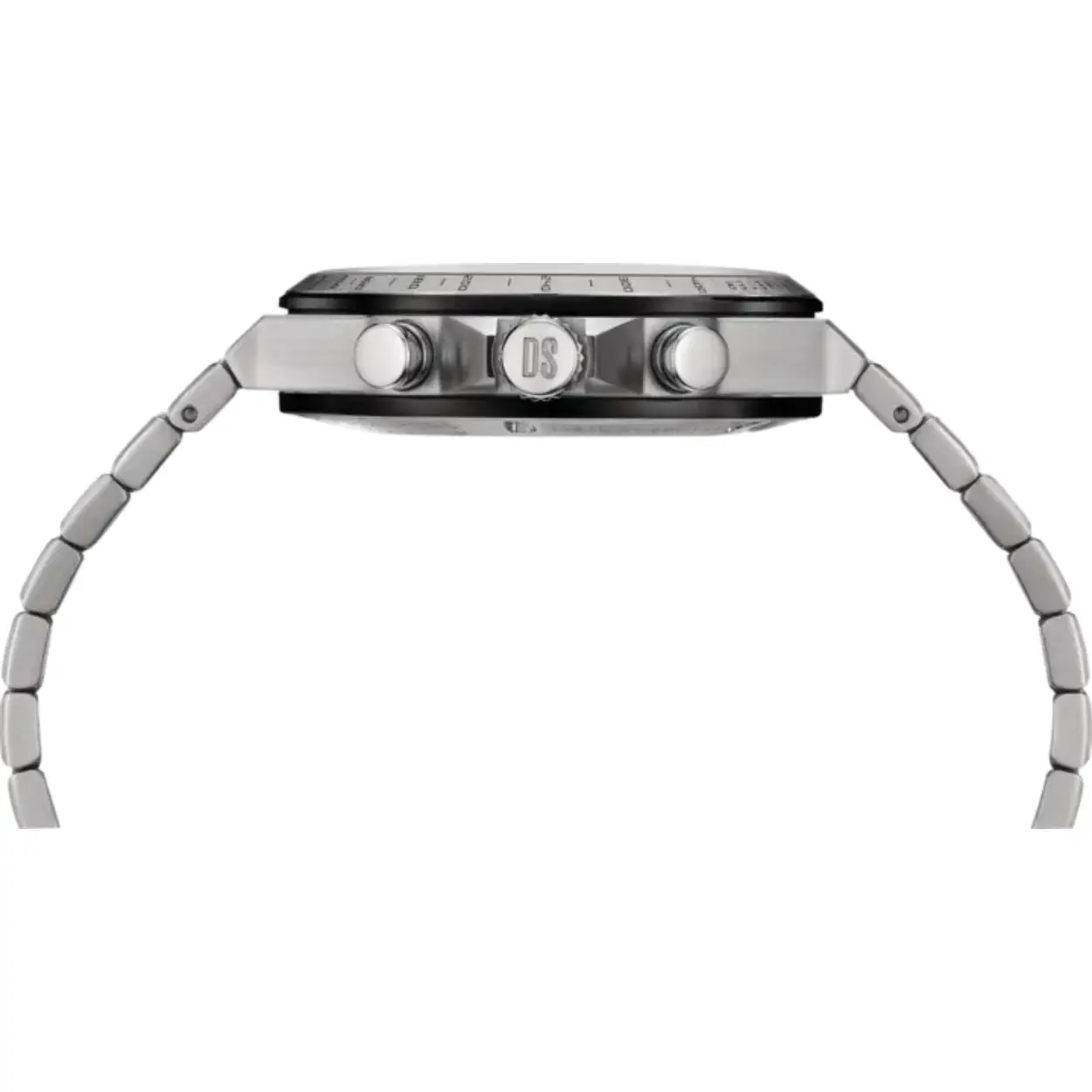 Net zo sportief, zo niet meer, is de nieuwe DS-7 Chronograph uitgerust met een PrecidriveTM quartz uurwerk in een ronde roestvrijstalen kast van 41 mm. Als aanvulling op de uren-, minuten-, kleine seconden- en datumweergaven zijn er een centrale stopseconden-, 1/10-secondenweergave en een 30-minutenteller. Een tachometrische schaal op de dunne rand biedt een eenvoudige manier om snelheden te meten. Met een metallic glans of helemaal stoer in geborsteld zwart: deze horloges zijn eigentijdse klassiekers die je elke dag wilt dragen.