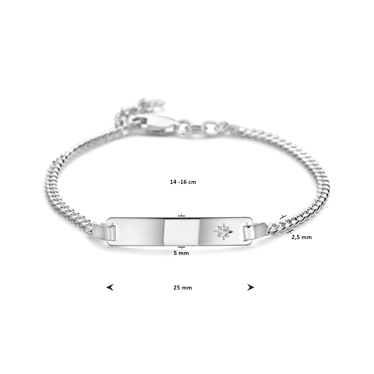 Zilveren graveerarmband met zirkonia. De lengte bedraagt 14cm plus 2 cm.