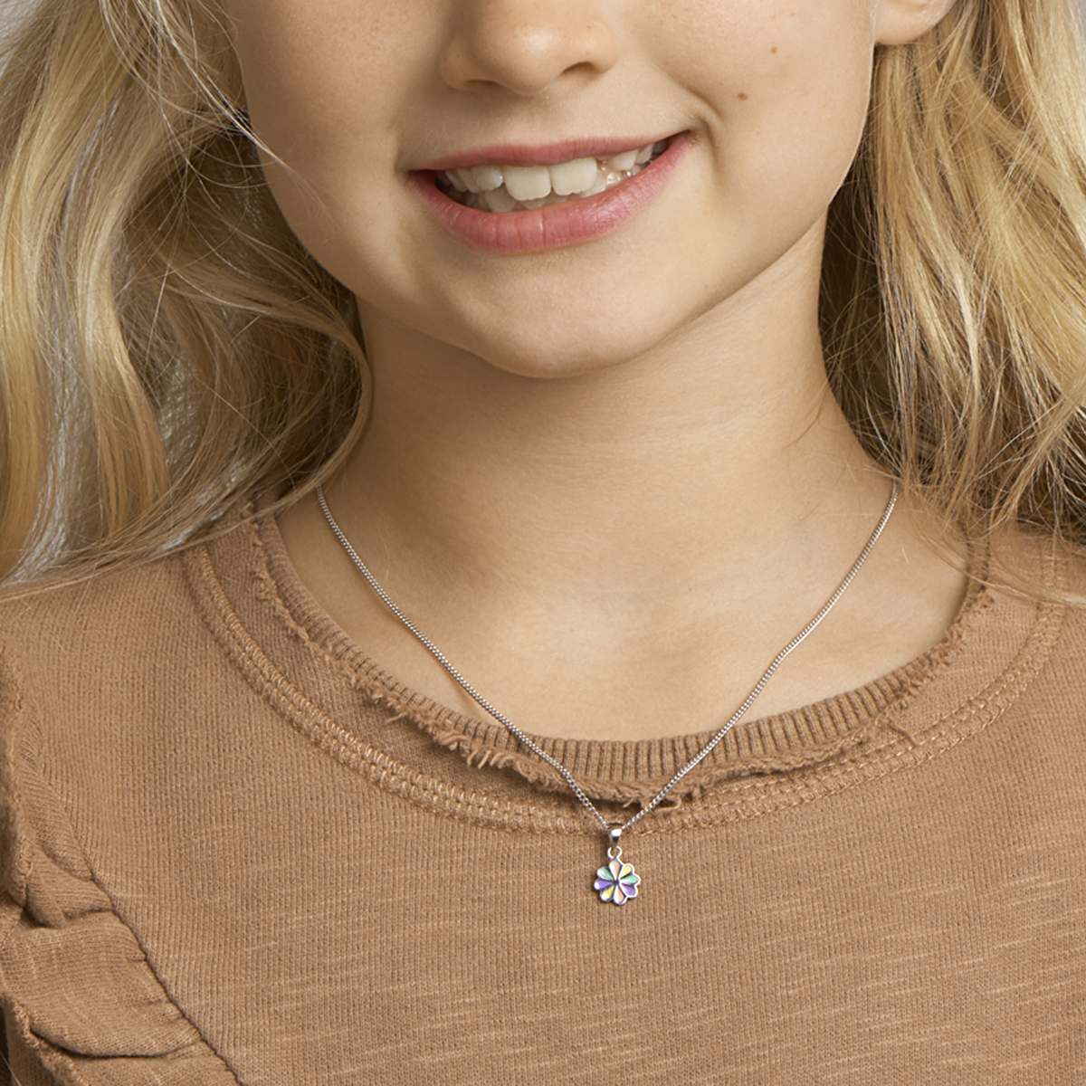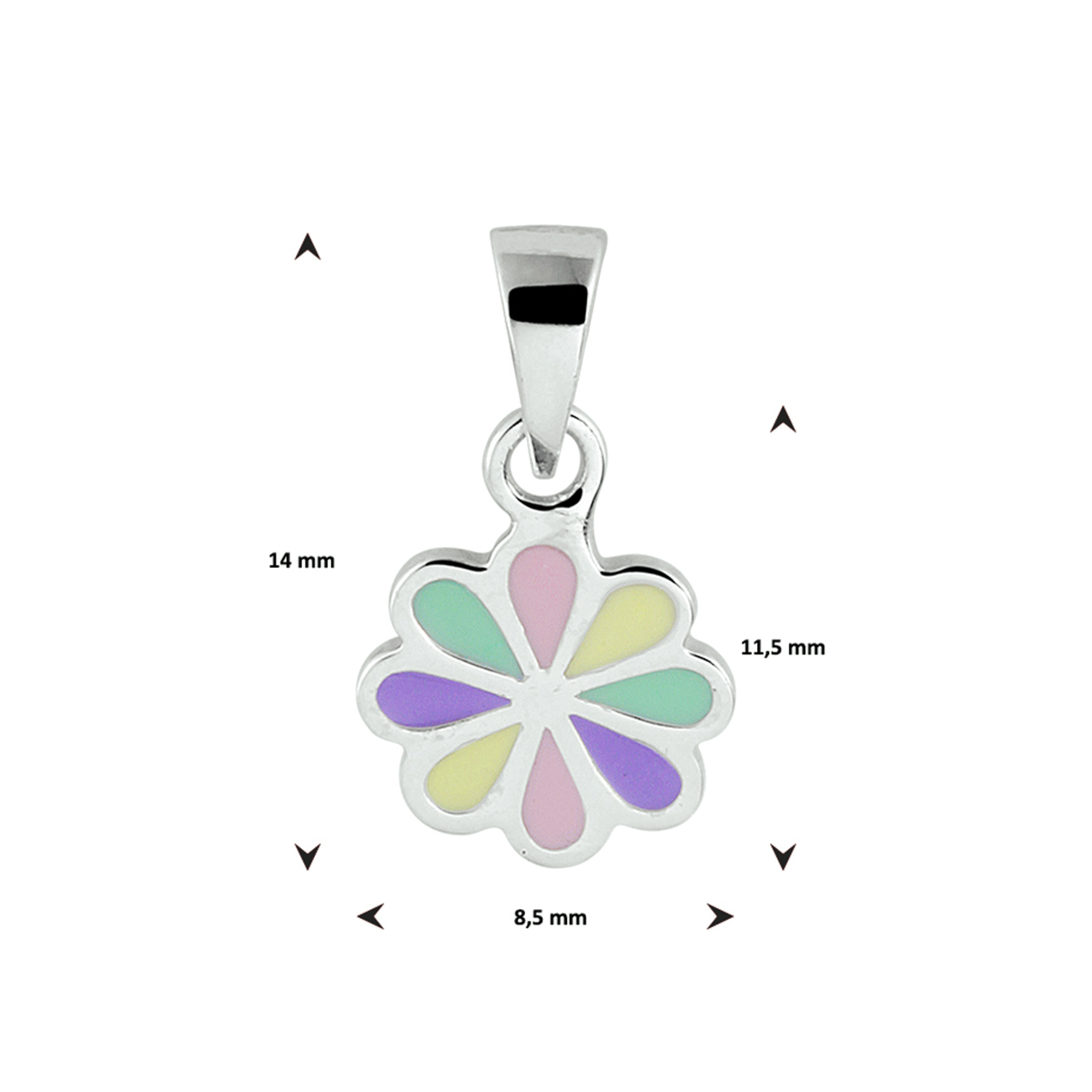 De hanger is gemaakt van gerhodineerd zilver en is geelkleurig. Het is een sieraad voor kinderen.