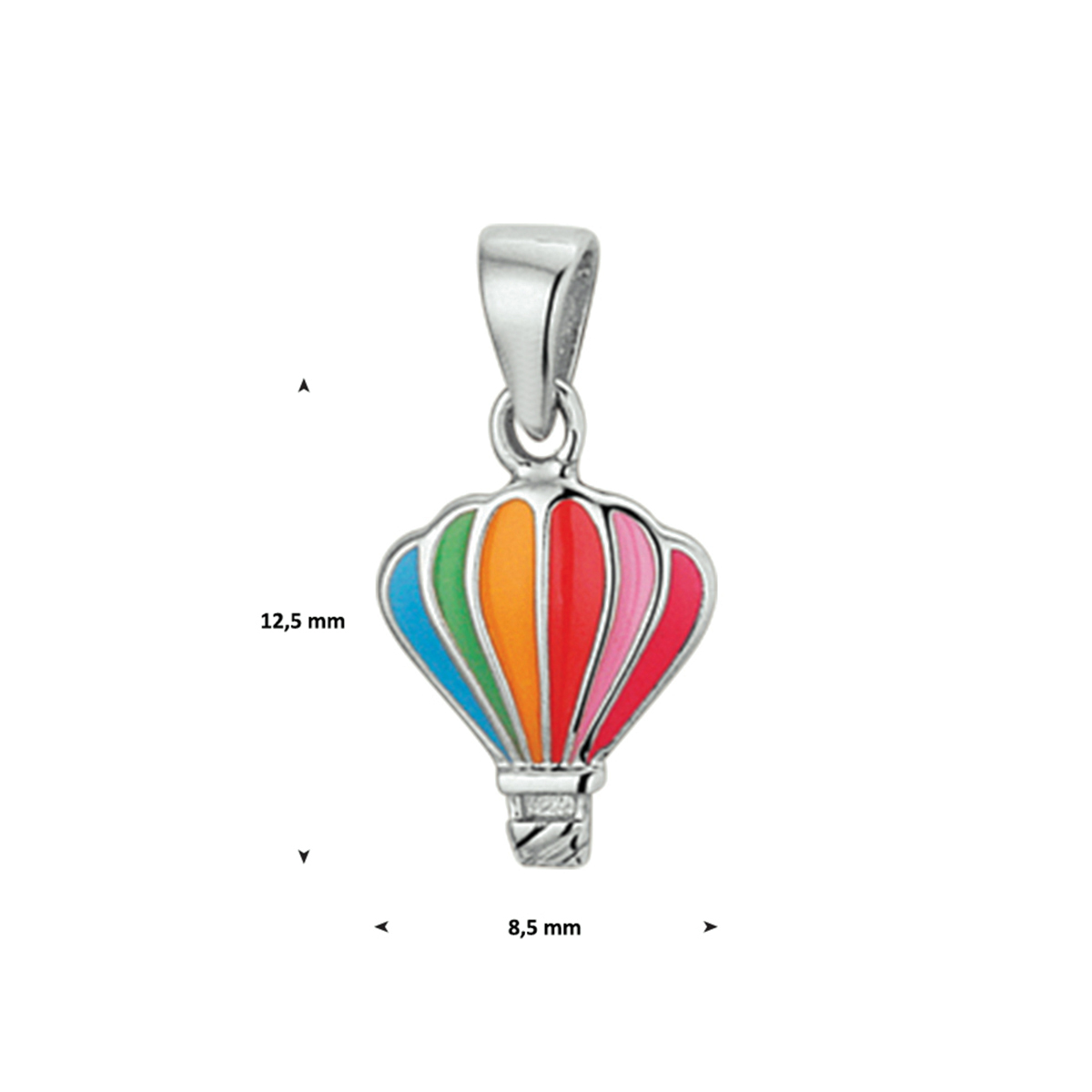 Super leuk kleurijk gerhodineerd zilveren luchtballon hanger uitgevoerd met verschillende kleuren emaille. De hanger heeft een afmeting van 12.5x8.5mm. U kunt deze hanger combineren met bijpassende sieraden of een collier uit onze collectie.Tip: Leuk om kado te geven kleurrijk en schattig wat zal ze stralen!