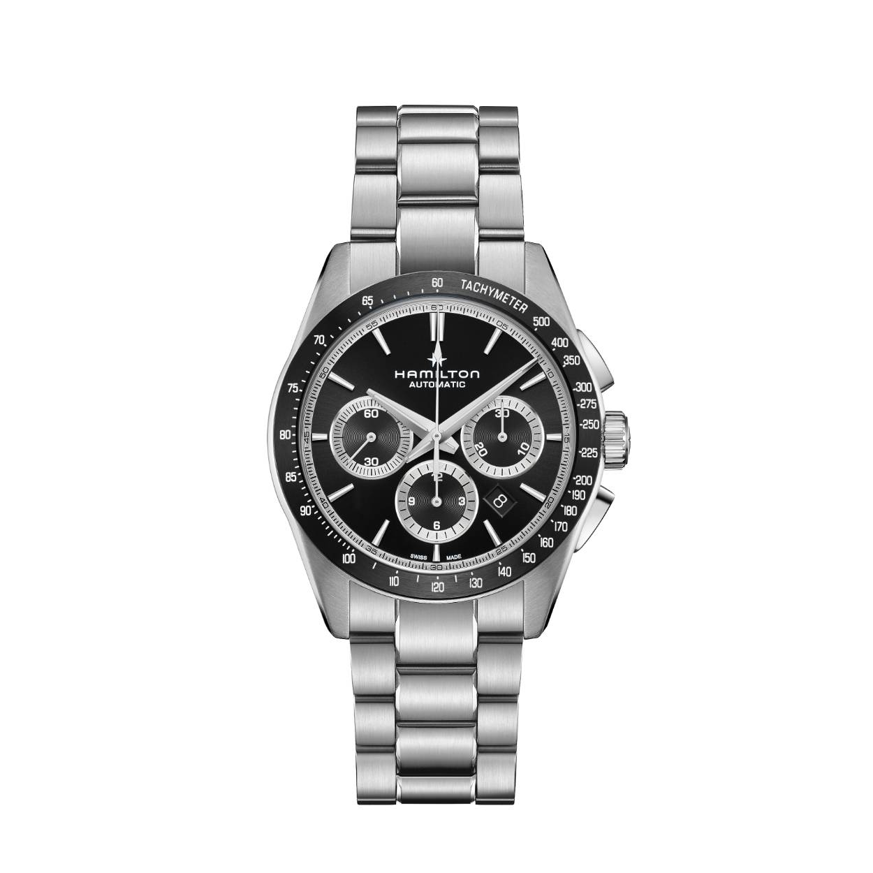 De Jazzmaster Performer-lijn is gemaakt voor degenen die de voorkeur geven aan functie en stijl tegelijk en biedt een krachtige sport-chique uitstraling. Aangedreven door het H-31 automatische chronograaf uurwerk met 60 uur gangreserve, heeft deze Jazzmaster Performer Automatic Chronograph een 42 mm roestvrijstalen kast geaccentueerd door een slanke zwarte wijzerplaat en een assertieve roestvrijstalen armband.
