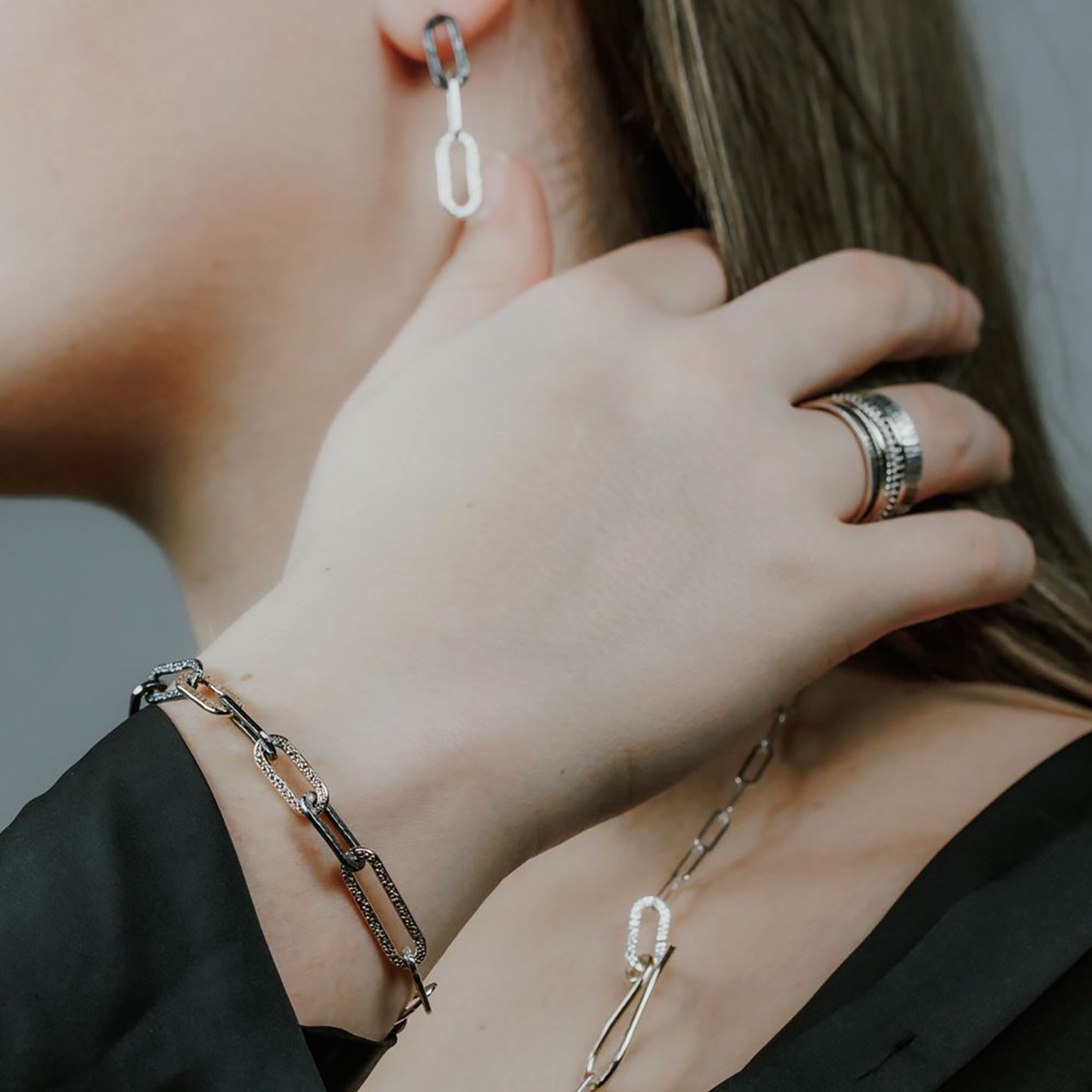 Armband van Jeh Jewels met 3 kleuren schakels. Gemaakt van Goldfilled en 925 (geoxideerd) sterling zilver. Combineer deze armband met een bijpassend collier en oorhangers.