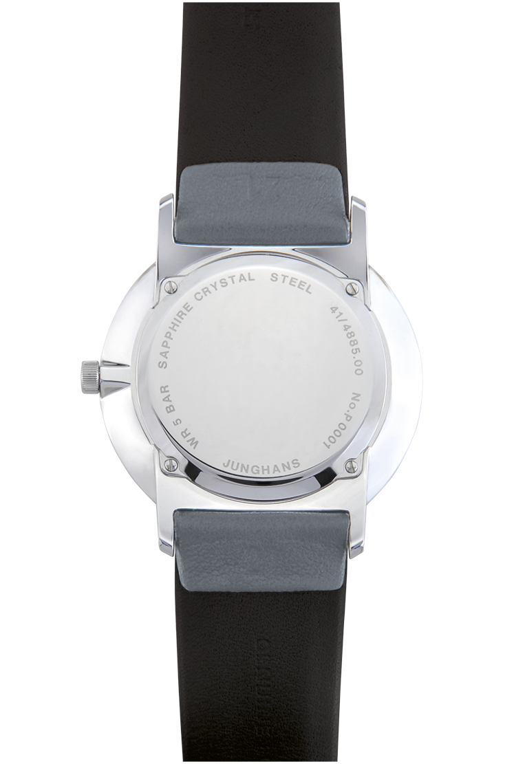 De Junghans Form Quartz met modelnummer 41/4885.00 is een stijlvolle horloge met een ronde, zilverkleurige kast van roestvrij staal en wit wijzerplaat met Arabische indexen. Het heeft een echt leren grijze band en een analoog quartz uurwerk. Waterbestendig tot 5 ATM, met saffierglas en datumaanduiding. Perfect te dragen bij zakelijke en casual gelegenheden. Gewicht: 43 gram.