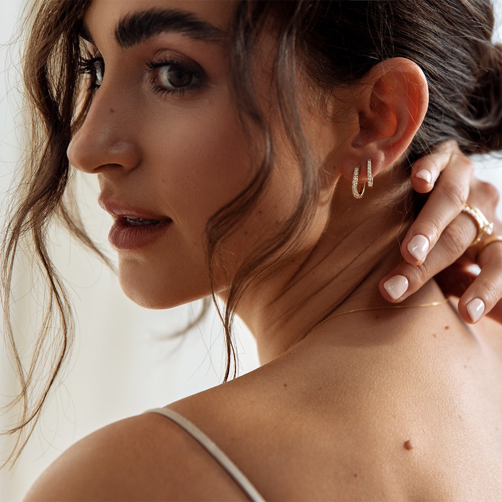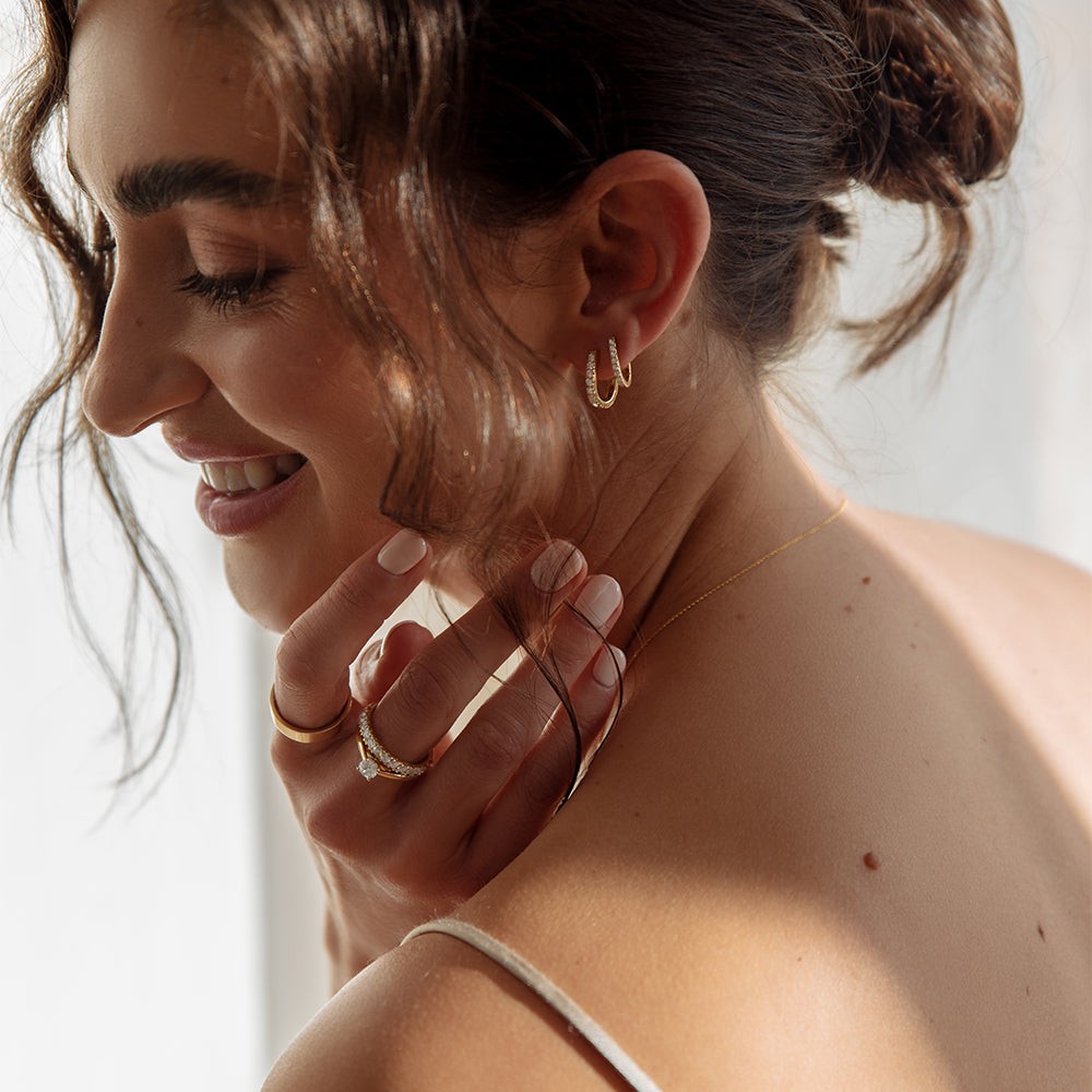Geelgouden oorringen 'Millie', halfrond gezet (0.20 crt.) labdiamant
