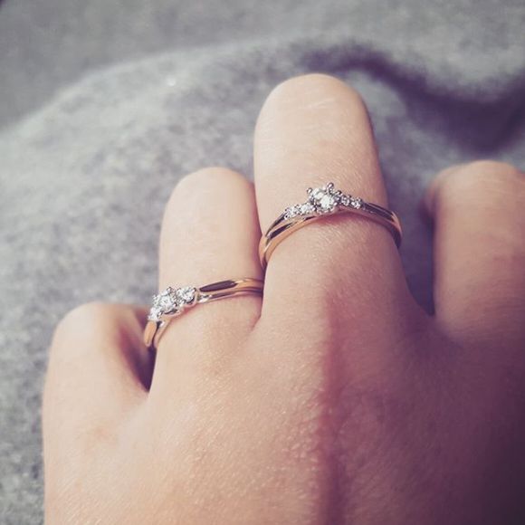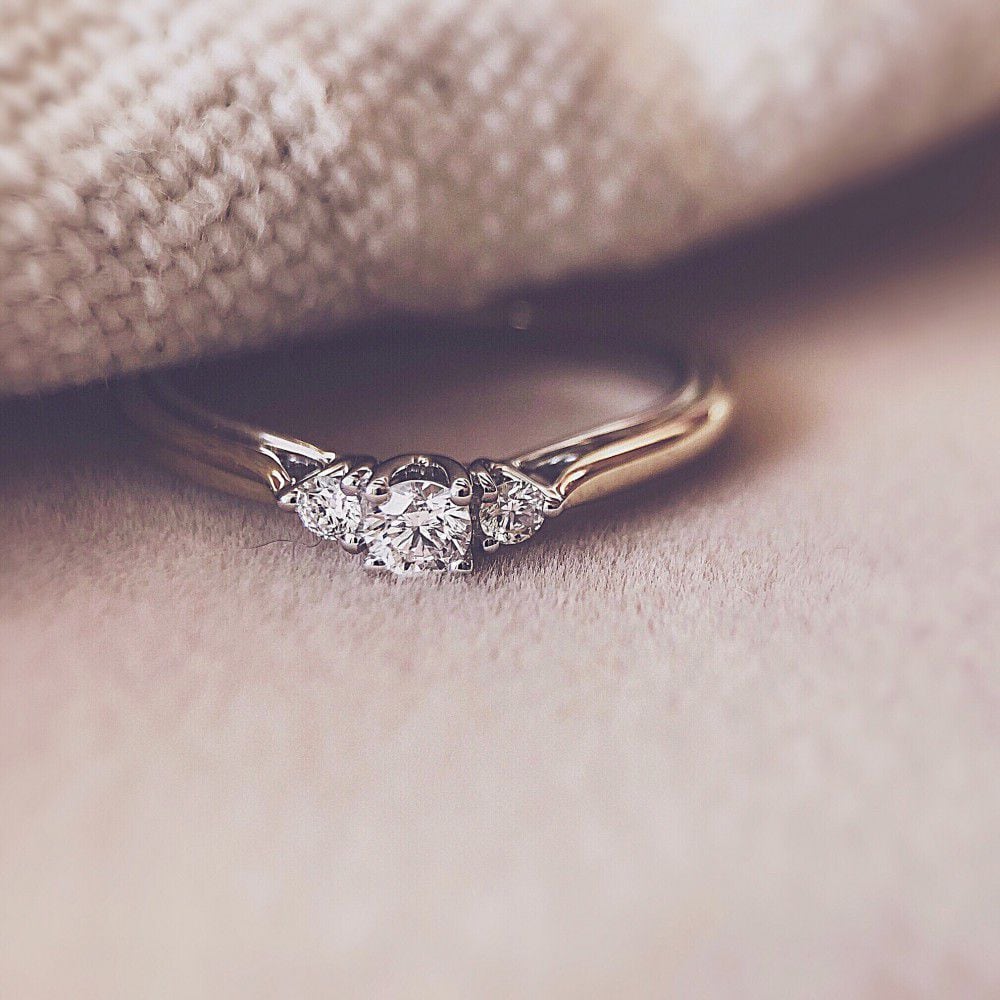 Bicolor geel- en witgouden damesring met drie briljanten in sierlijke zetting, middensteen 0.12 crt, totaal 0.19 crt.