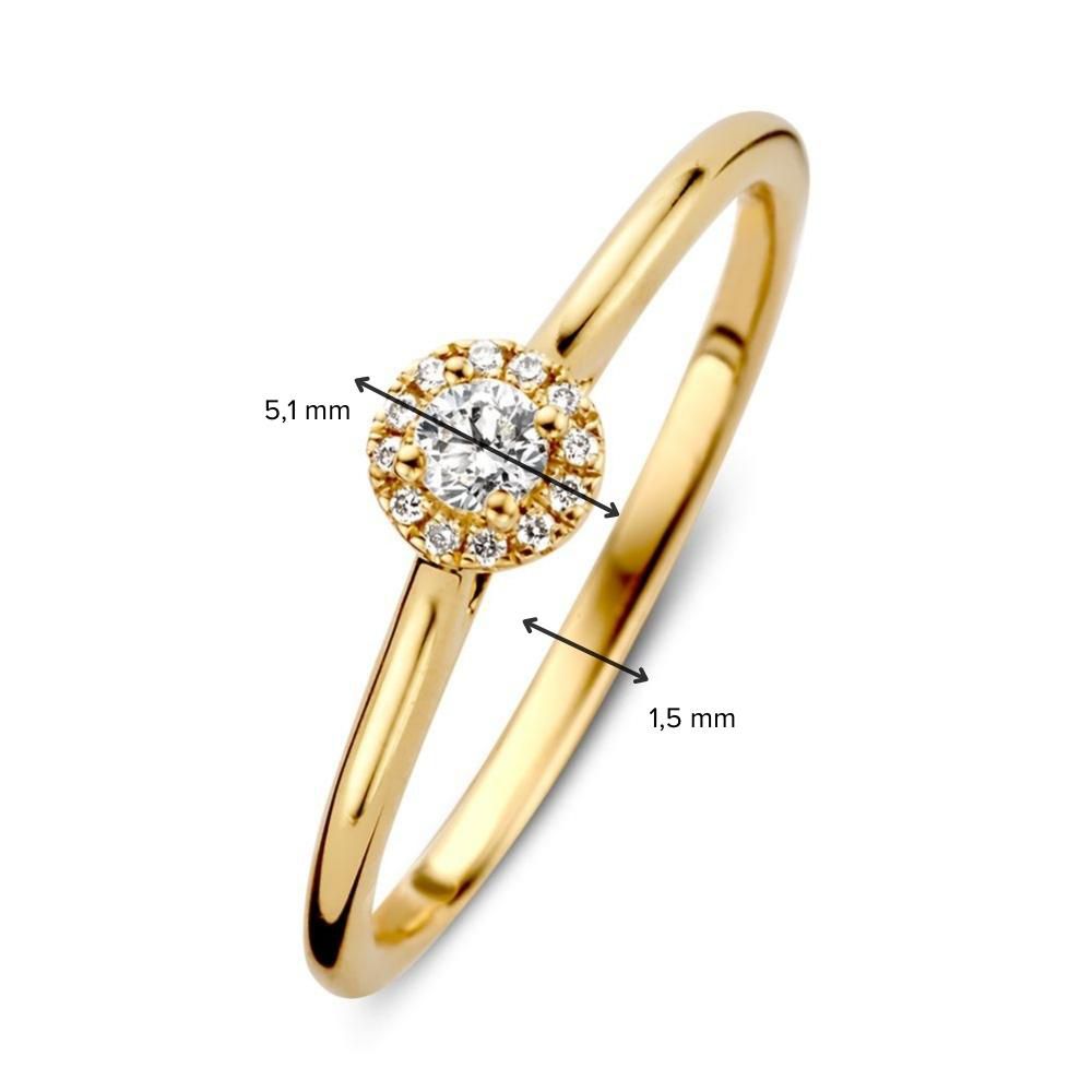 Geelgouden ring met diamant in entourage zetting.