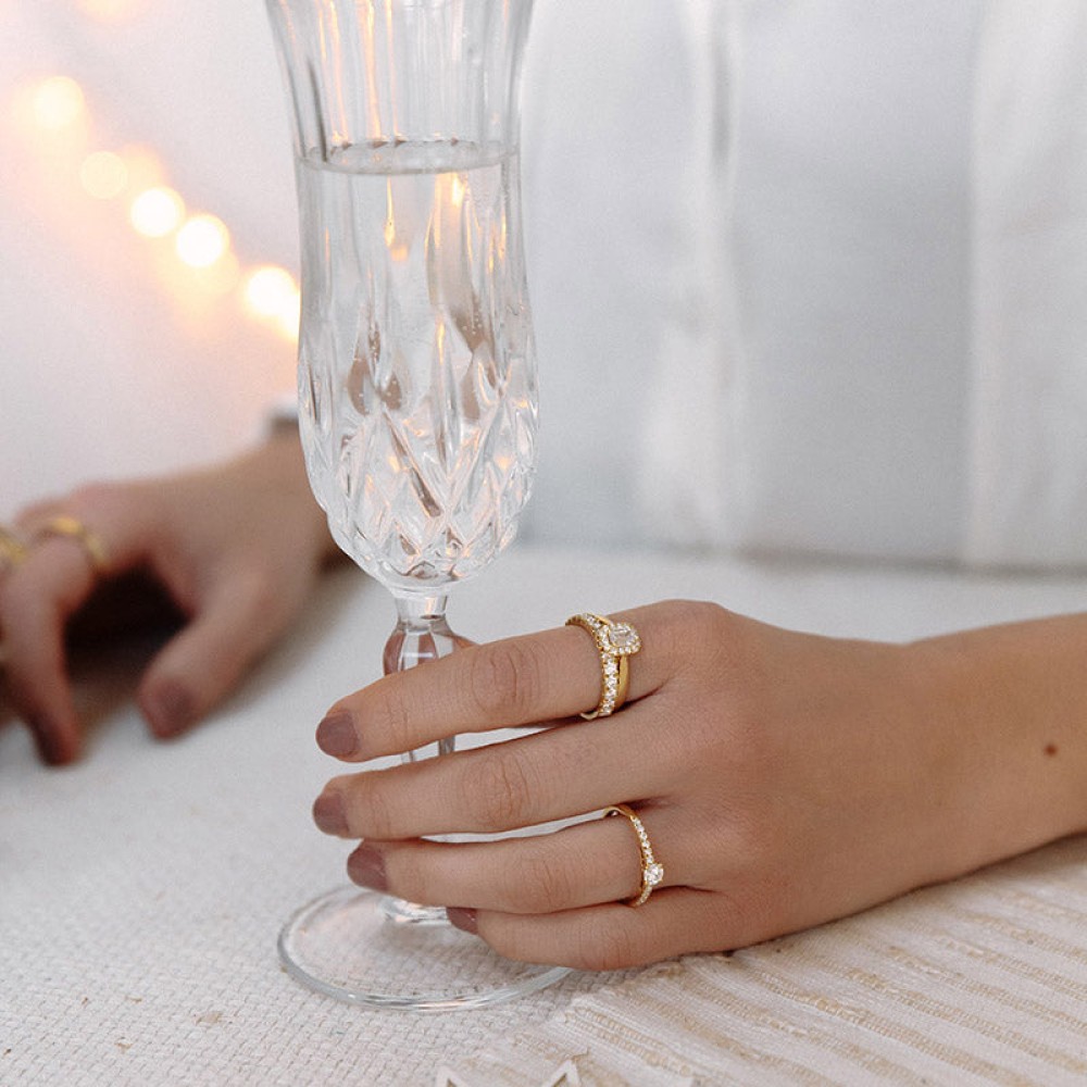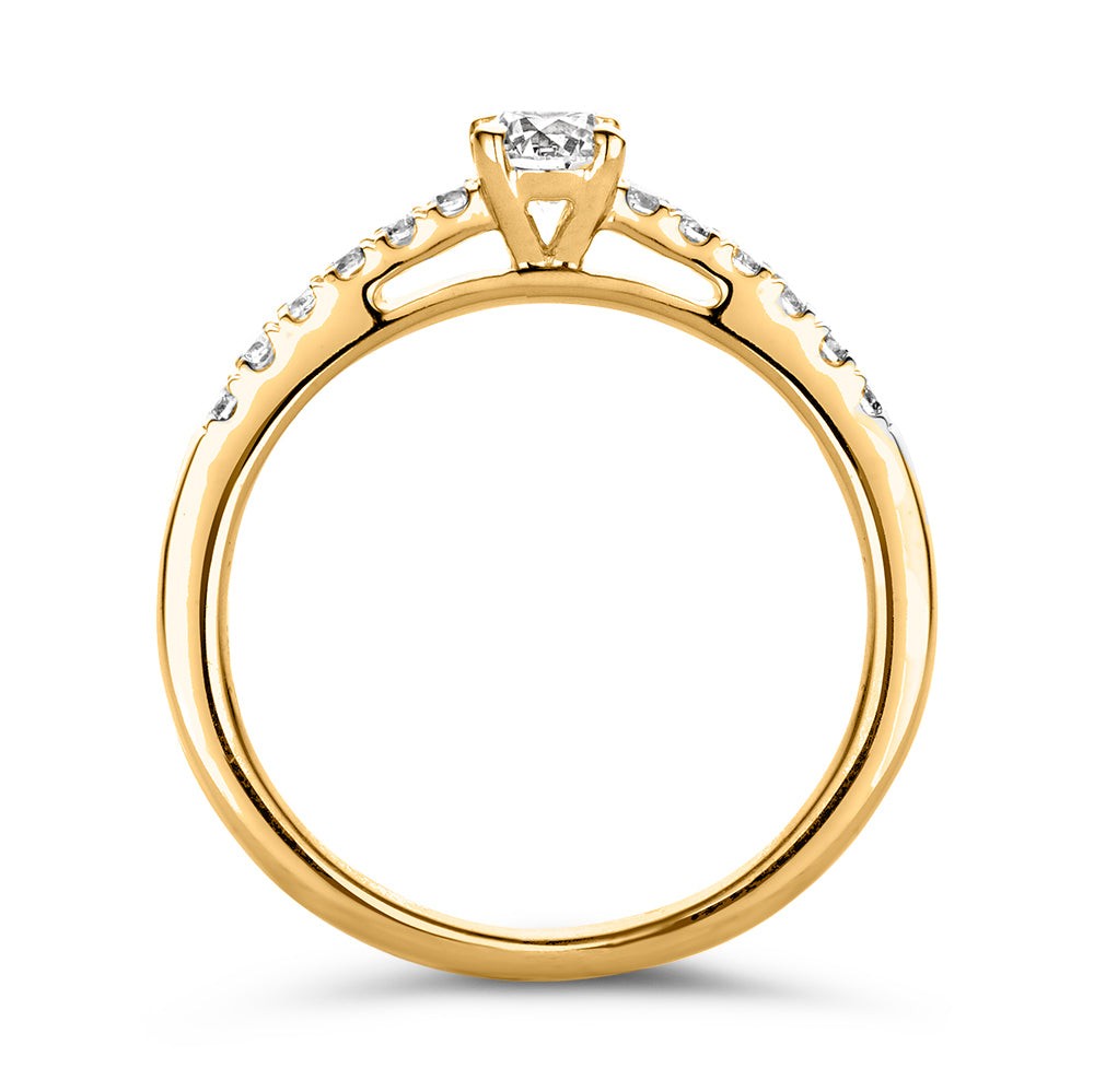 Geelgouden ring 'Mary' met briljant middensteen (0,30 crt.) en zijstenen gemaakt van 18 karaat gerecycled goud.