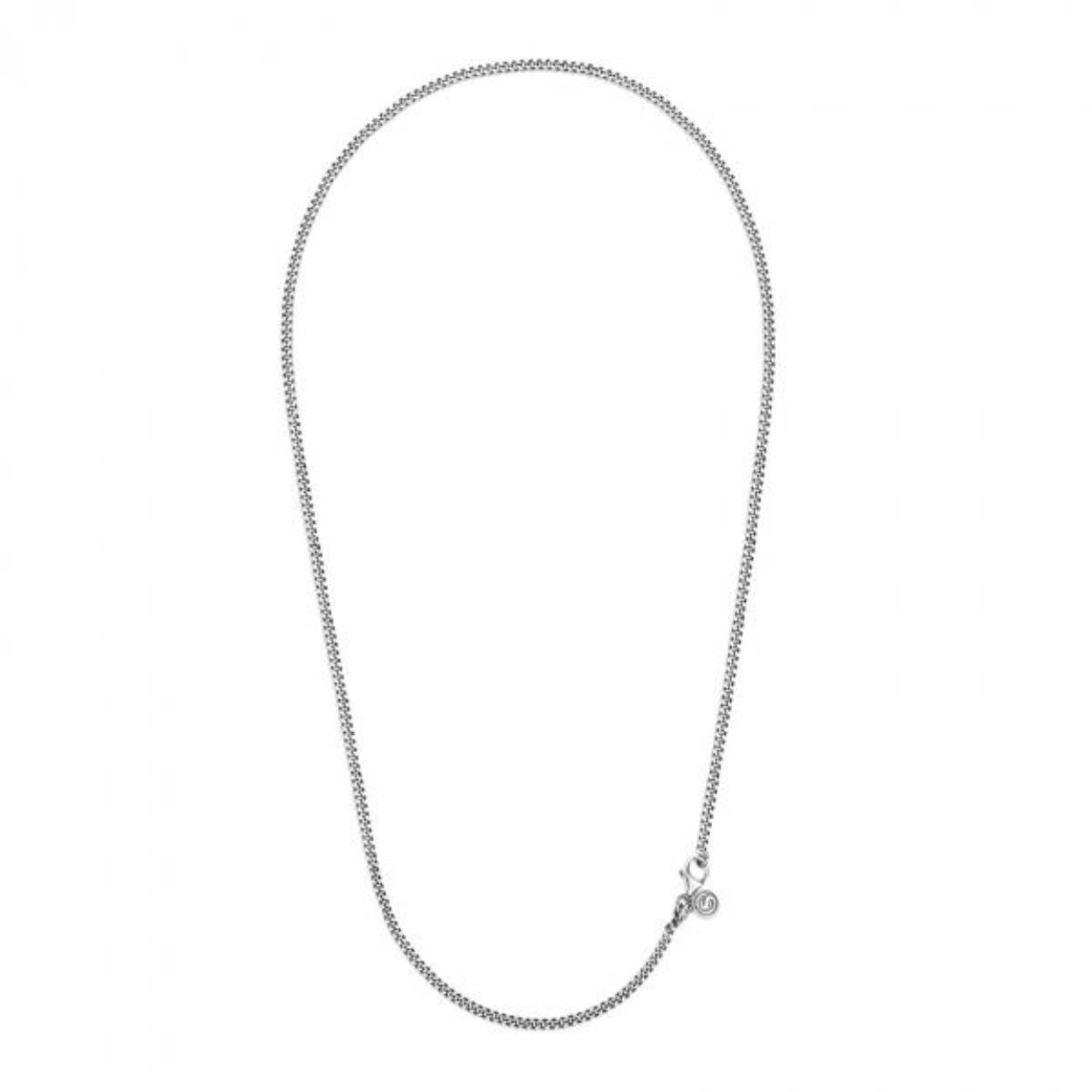 Deze zilveren schakel ketting met karabijnhaak sluiting is gemaakt van 925 sterling zilver. De ketting kan zowel met als zonder hanger gedragen worden. Deze basis ketting combineert heel makkelijk en kan eigenlijk overal bij gedragen worden.